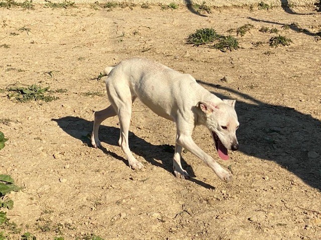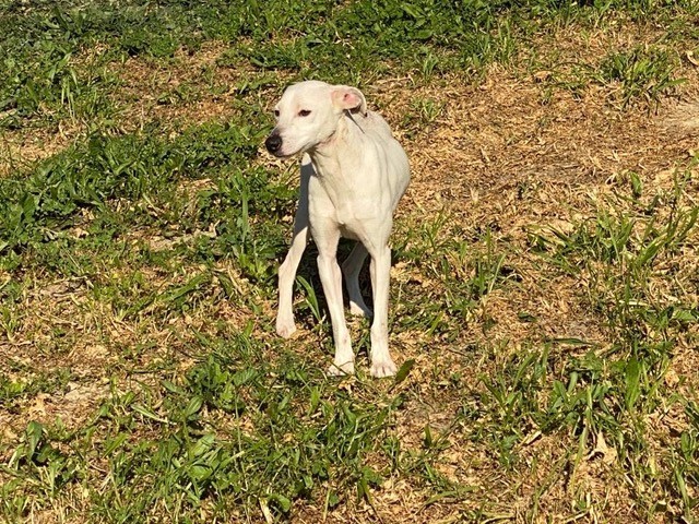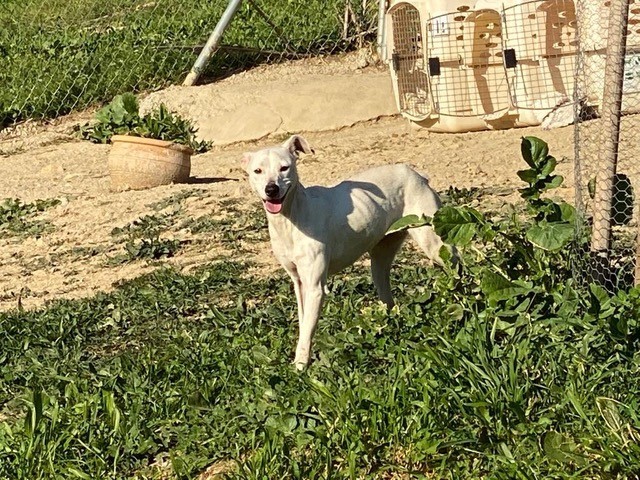 Unser Schneeweißchen Bonny ist eine lustige Bodeguero-Mix-Dame, die noch ihr Plätzchen sucht. Sie lebt seit Kurzem in einer unserer spanischen Pflegestellen. Sie ist sehr verträglich mit anderen Fellnasen, Rüden wie Mädchen.