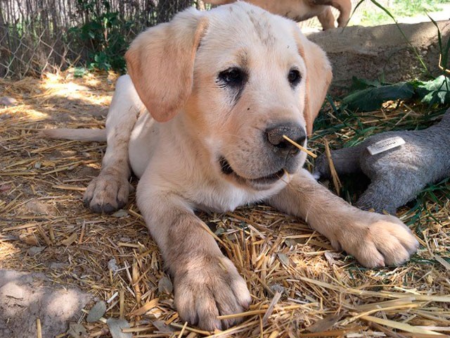 Obelix, ein Mix aus Labrador und Mastin español, vereint die Wesenszüge beider Rassen in sich. Er ist gut sozialisiert und verträglich mit anderen Hunden. Bei älteren Hunden ordnet er sich unter. Er ist sehr verspielt und rauft gerne mit seinen Kumpels.
