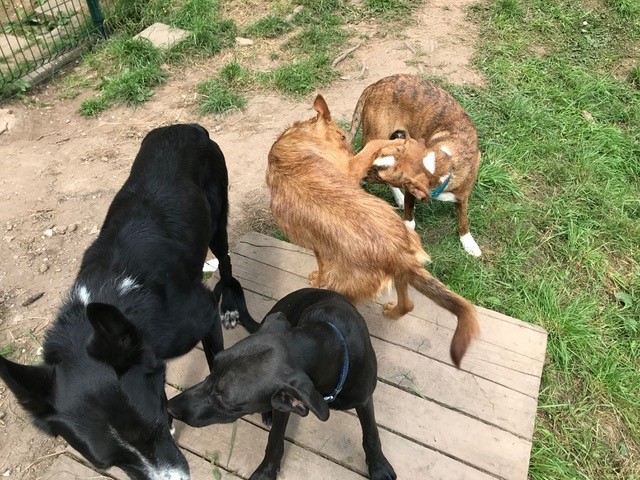 Zora ist in verschiedenen Rudeln integriert und verträglich mit allen Fellnasen. Innerhalb der Gruppe ordnet sich Zora eher unter. Sie ist sehr verspielt und tobt gerne mit ihren Hundekumpels herum.